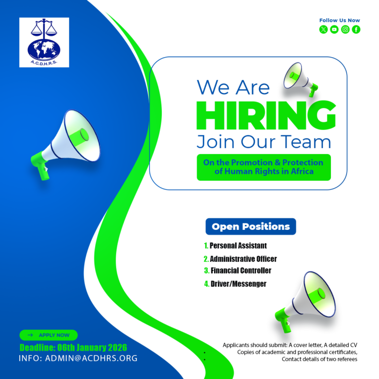 The African Centre for Democracy and Human Rights Studies (ACDHRS), based in Banjul, The Gambia, invites qualified and motivated candidates to apply for the following positions: [โฆ]